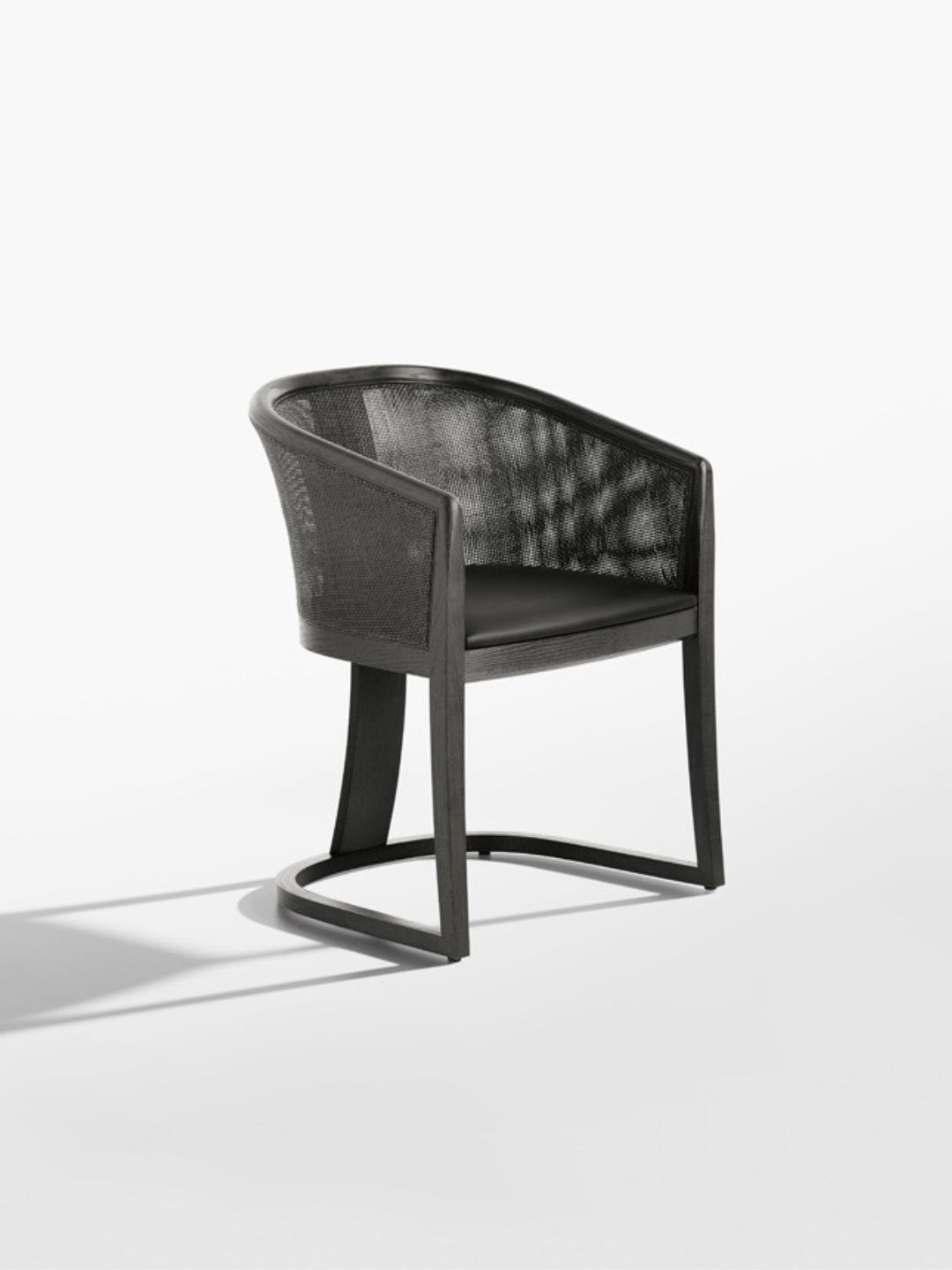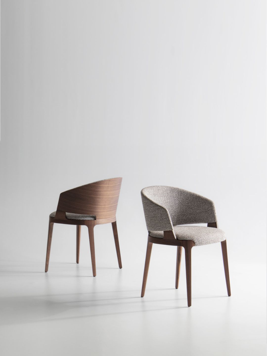 The Grace tub chair is made up of a solid brushed ash structure, modeled in geometric, soft and enveloping shapes.