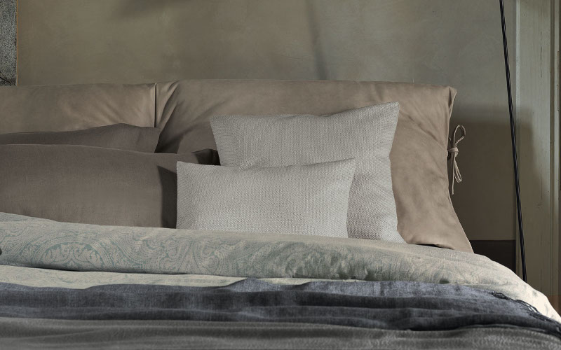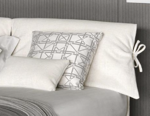 The progenitor of Flou textile beds, unmistakeable with its little bows. The headboard it is upholstered like the base in fabric, leather or Ecopelle with completley removable covers thanks to the practical velcro fasteners, it can also be reclined by means of a manual mechanism. The pillowcases on the headboard allows to pillows to be stored away from dust.