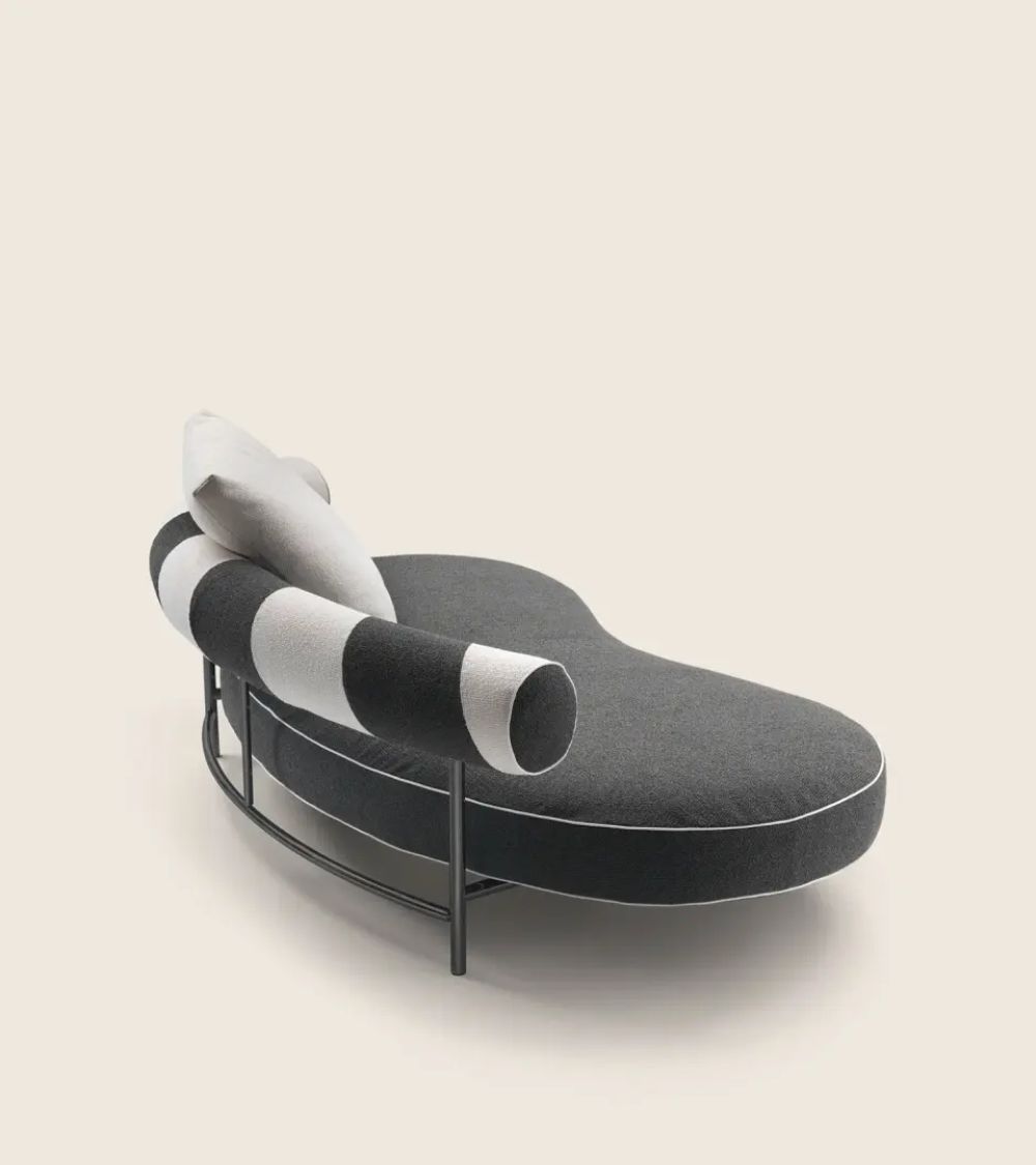 The new model carries the name Supermax and, compared to the Max sofa of 1983, has more generous proportions. The clearly Rationalist-inspired sleek tubular metal structure was lowered a bit to encourage a more relaxed posture, while the size of the characteristic kidney-bean shaped seat cushion was completely redesigned and enhanced with additional padding for greater comfort. The unmistakable cushioned cylindrical backrest is even more eye-catching in the version with two-tone upholstery.